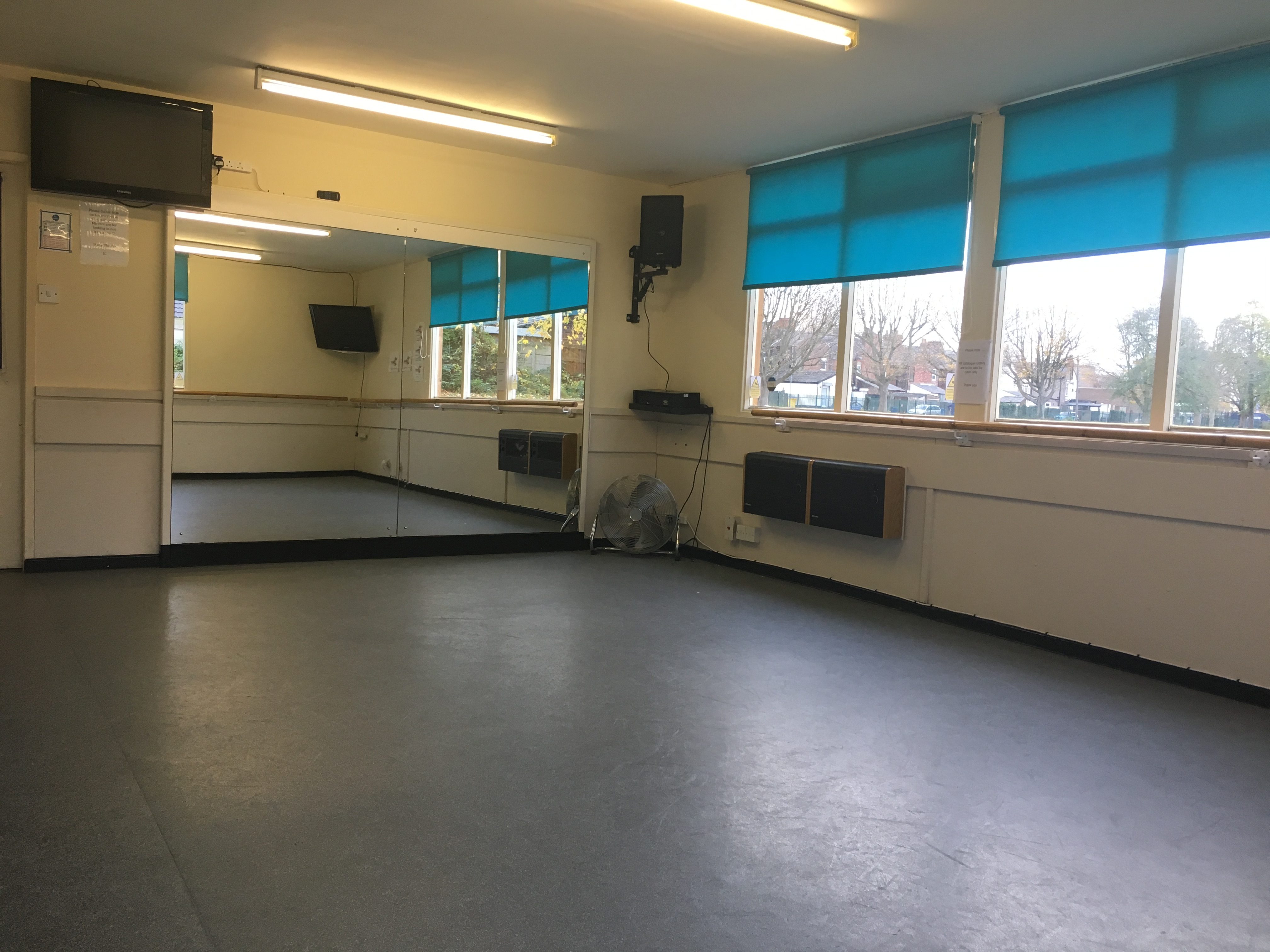The main and largest studio, that includes two small changing rooms at the rear of the studio and built-in sound system.